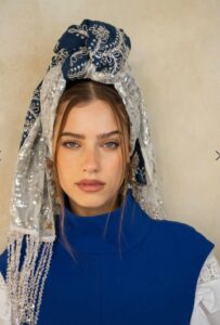 מטפחת ערב יוקרתית בעבודת שילוב מרהיבה, בגווני כחול עמוק וכסף, עם רקמה עדינה ונגיעות פאייטים מנצנצות. העיצוב הרב־שכבתי יוצר מראה עשיר ומרשים, עם בד נשפך וקישוטים אלגנטיים שמוסיפים עומק וזוהר. אידאלית לאירועים, שמחות ולמראה ערב מתוחכם – מטפחת שהיא תכשיט בפני עצמו.