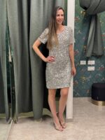 שמלת סיאול בעיצוב קלאסי עם בד מנצנץ שמעניק מראה יוקרתי ומרשים.
